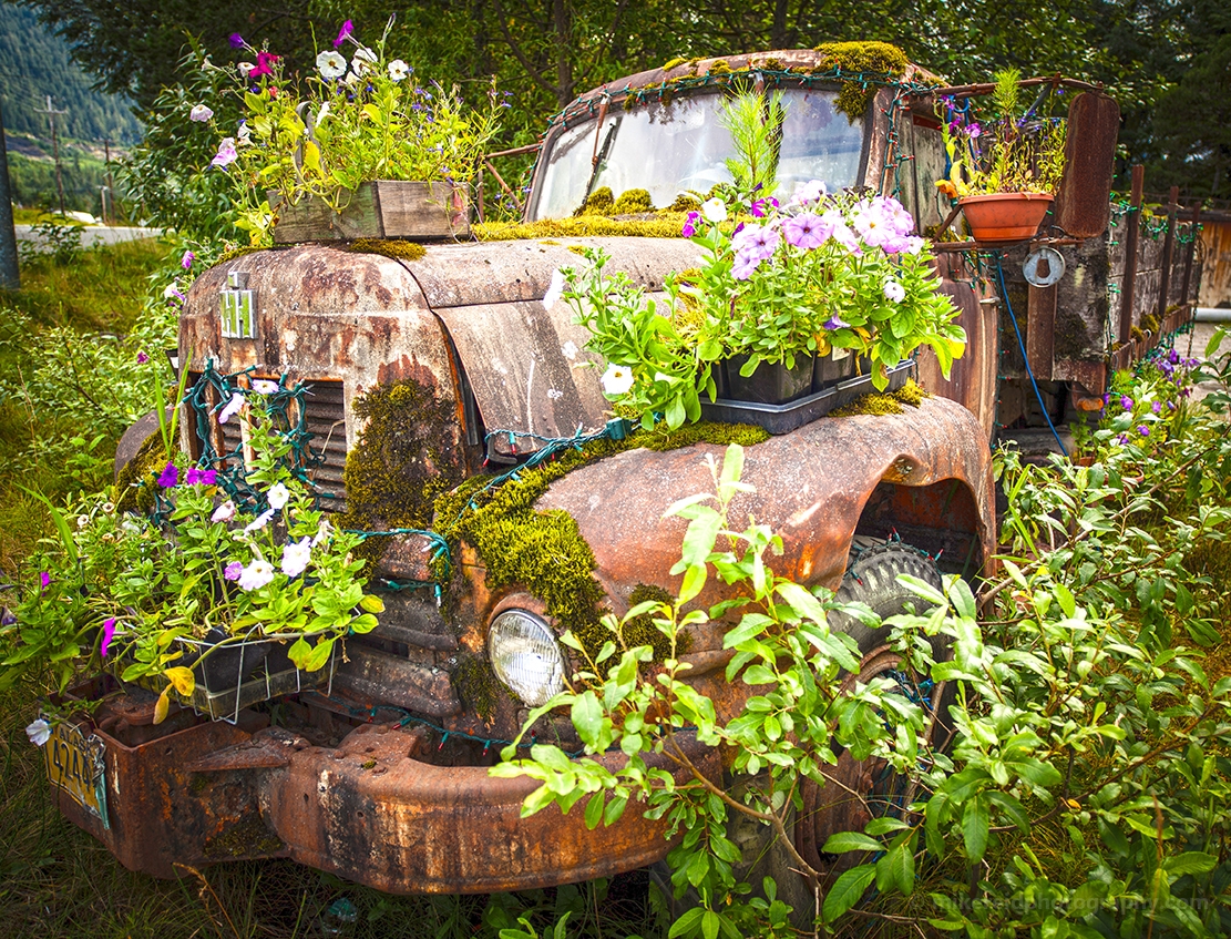 My favorite funky rusty old truck covered in flowers in Petersburg Alaska