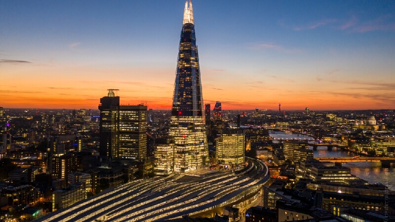 Over London Shard and Thames Sunset DJI Mavic Pro 2