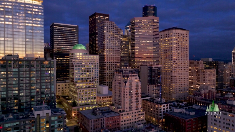 Aerial Downtown Seattle Blue Hour Skyline ProRes422
