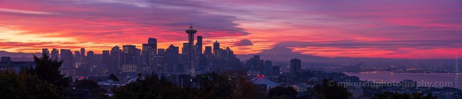 Seattle Photography From Kerry Park Burning Sunrise Skies Panorama