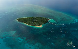 A breathtaking aerial photograph of Green Island on the Great Barrier Reef, captured with the Fujifilm GFX100S. The image showcases the island’s lush tropical rainforest surrounded by brilliant turquoise shallows and deep blue reef waters. Just off the coast of Cairns, this idyllic coral cay stands as one of the reef’s most iconic destinations. A stunning fine art print that celebrates the vivid color and serenity of tropical North Queensland.
