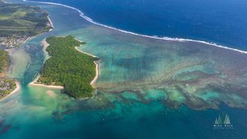 A spectacular aerial photograph of the coral reefs off Natadola Beach on Fiji’s Coral Coast. The image captures the vibrant turquoise shallows, lush green headlands, and intricate reef patterns stretching into the deep blue Pacific. This stunning view reveals the natural harmony of land and sea in one of Fiji’s most breathtaking coastal locations. A perfect fine art print for ocean lovers and collectors of tropical aerial landscapes.
