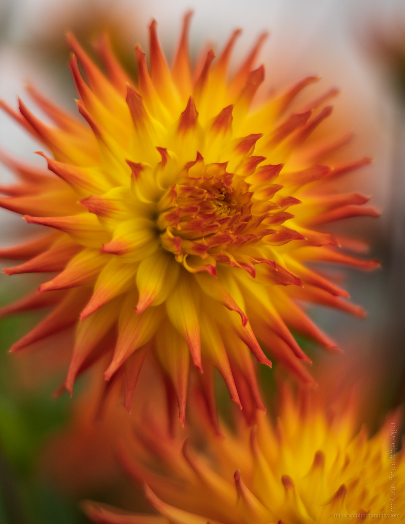 Dahlia Photography Yellow Red Burst