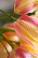Several gently lit tulip blooms folding over.