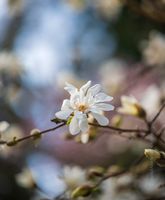 A radiant white magnolia blossom unfolds in the gentle light of spring, surrounded by buds and soft pastel bokeh. Captured with exquisite clarity and shallow depth of field, this image celebrates the fleeting grace of early-season blooms. Ideal for fine-art prints, interior décor, or editorial licensing, it evokes purity, calm, and renewal through refined botanical detail.