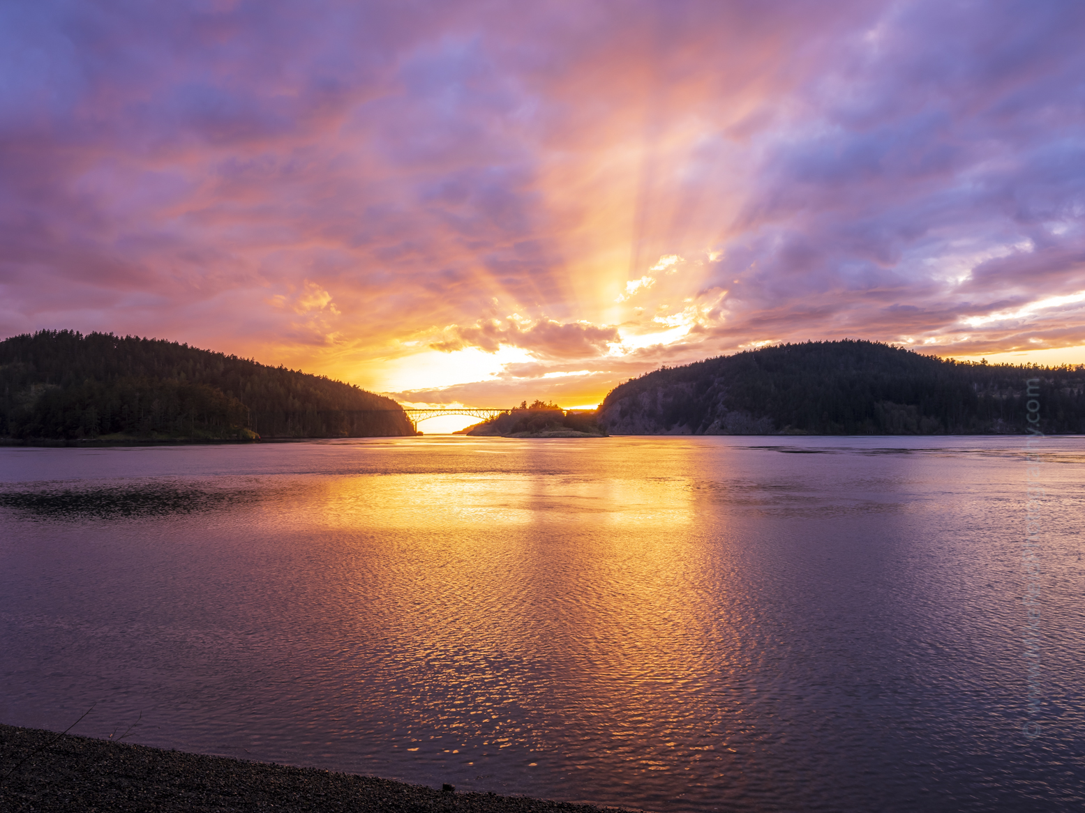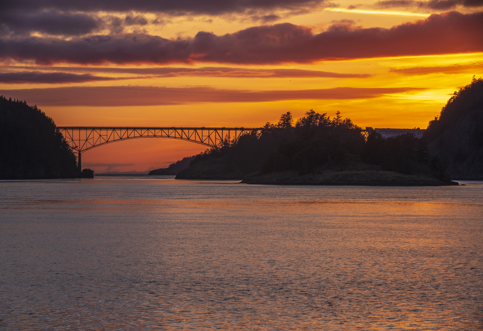 Deception Pass Bridge Fiery Skies Last Sun