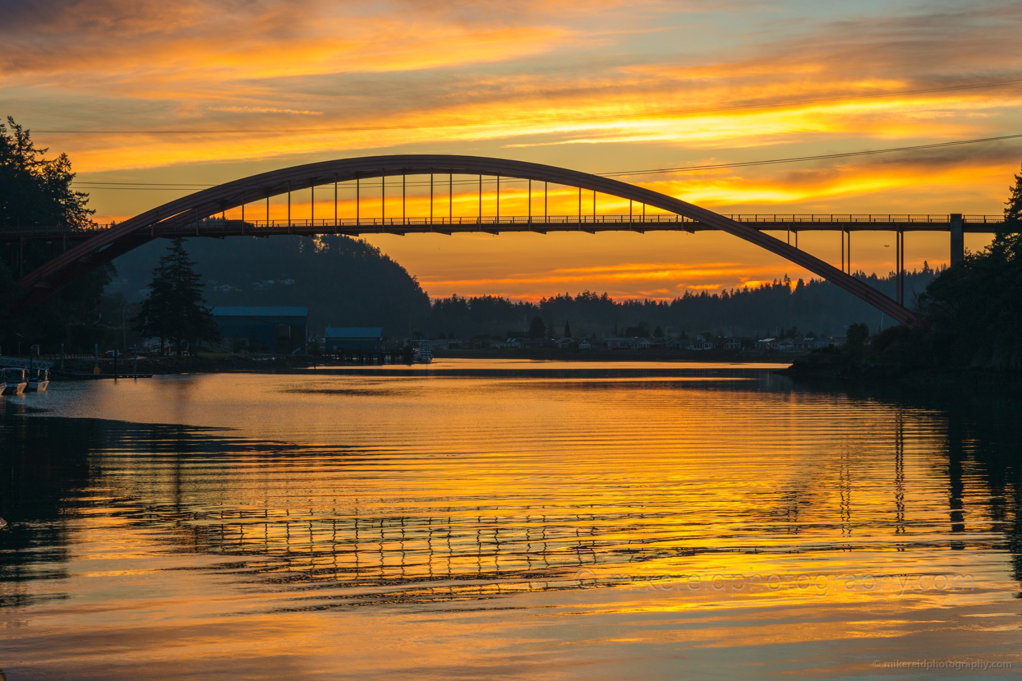La Conner Rainbow Bridge Sunset Reflection