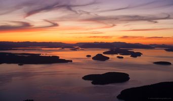 Northwest San Juan Islands Sunset Aerial Spieden Stuart Roche Harbor and Orcas Island