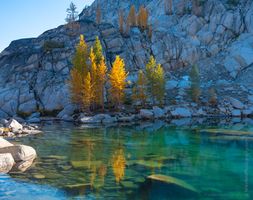 Enchantments Photography Sunlit Larches on an Alpine Lake