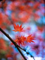 Fall Colors Bokeh Branch of Red Maple Leaves Closeup Zeiss 85mm Otus