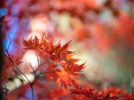Fall Colors Bokeh Branch of Red Maple Leaves Flourish