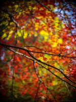 Fall Colors Bokeh Branch of Red Maple Leaves and Two Remaining