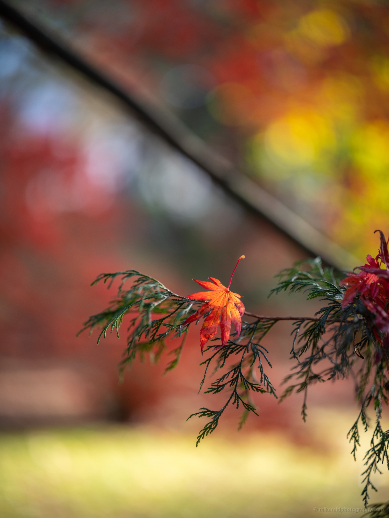 Fall Colors Bokeh Solitary Faded Red Leaf Closeup