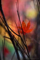 Thin depth of field acer leaves hanging on wet branches in the Arboretum