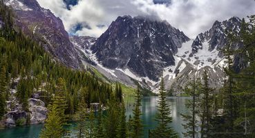 Beautiful wide view of Lake Colchuck, gateway to the Enchantments Lakes Basin in Washington.