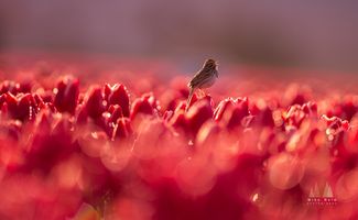 Skagit Valley Tulip Festival Morning Sparrows Song on Red Tulips.jpg