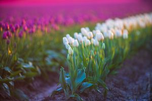 Skagit Valley Tulip Festival Sunlit Pink and White Tulips Bokeh Canon 200mm.jpg