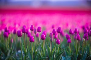 Skagit Valley Tulip Festival Sunlit Vibrant Pink Tulips Bokeh Depth Canon 80-200mm.jpg