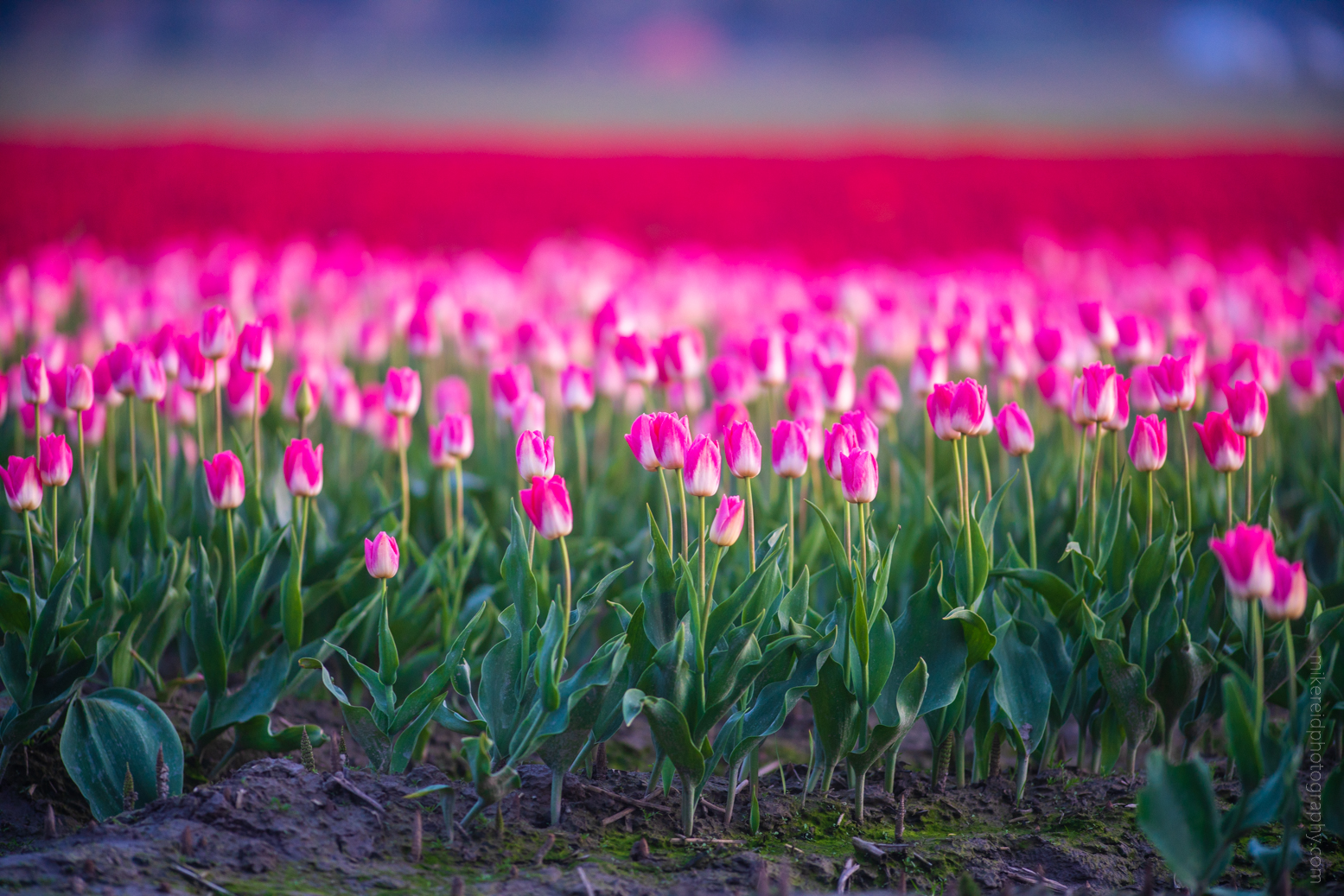 Skagit Valley Tulip Festival Sunlit Vibrant Pink Tulips Blooms Bokeh Depth Canon 80-200mm.jpg