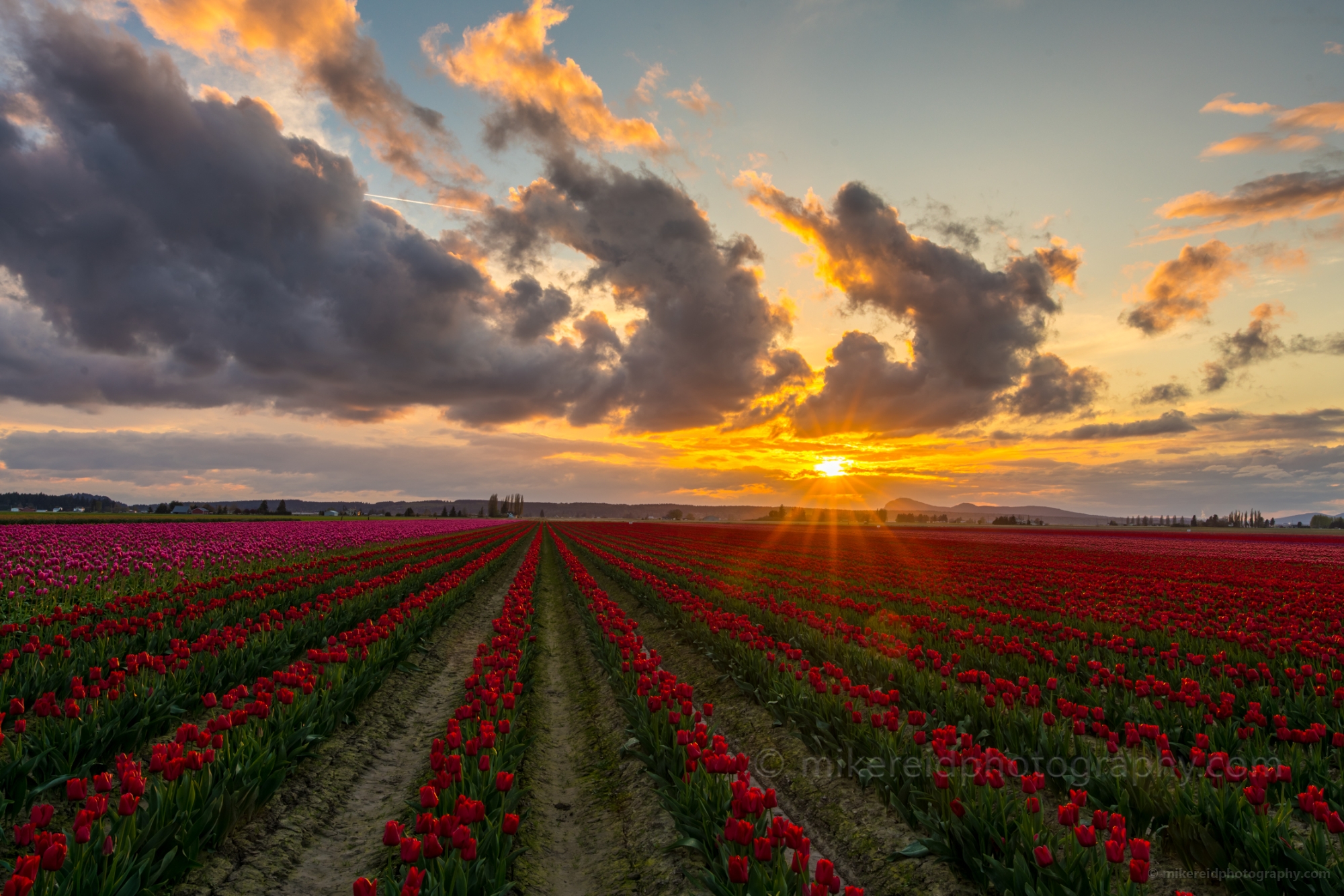 Skagit Valley Tulip Festival Sunset Clouds Rows Sunstar.jpg