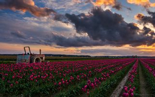 Skagit Valley Tulip Festival Tractor Sunset Cloudscape.jpg