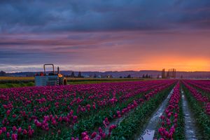 Skagit Valley Tulip Festival Tractor Waits For Dawn.jpg