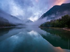 Diablo Lake Reflection Angles in the Fog Wide.jpg