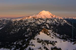 Mount Rainier Aerial Photography Sunrise Glow and Yakima Peak