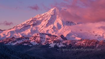Mount Rainier Aerial Photography Tatoosh Range Alpenglow Clouds
