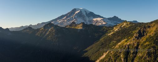 Mount Rainier Aerial Photography Tatoosh Range Dusk Glow Forest Panorama