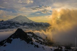 Rainier Aerial Photography Yakima Peak Clouds and Sun
