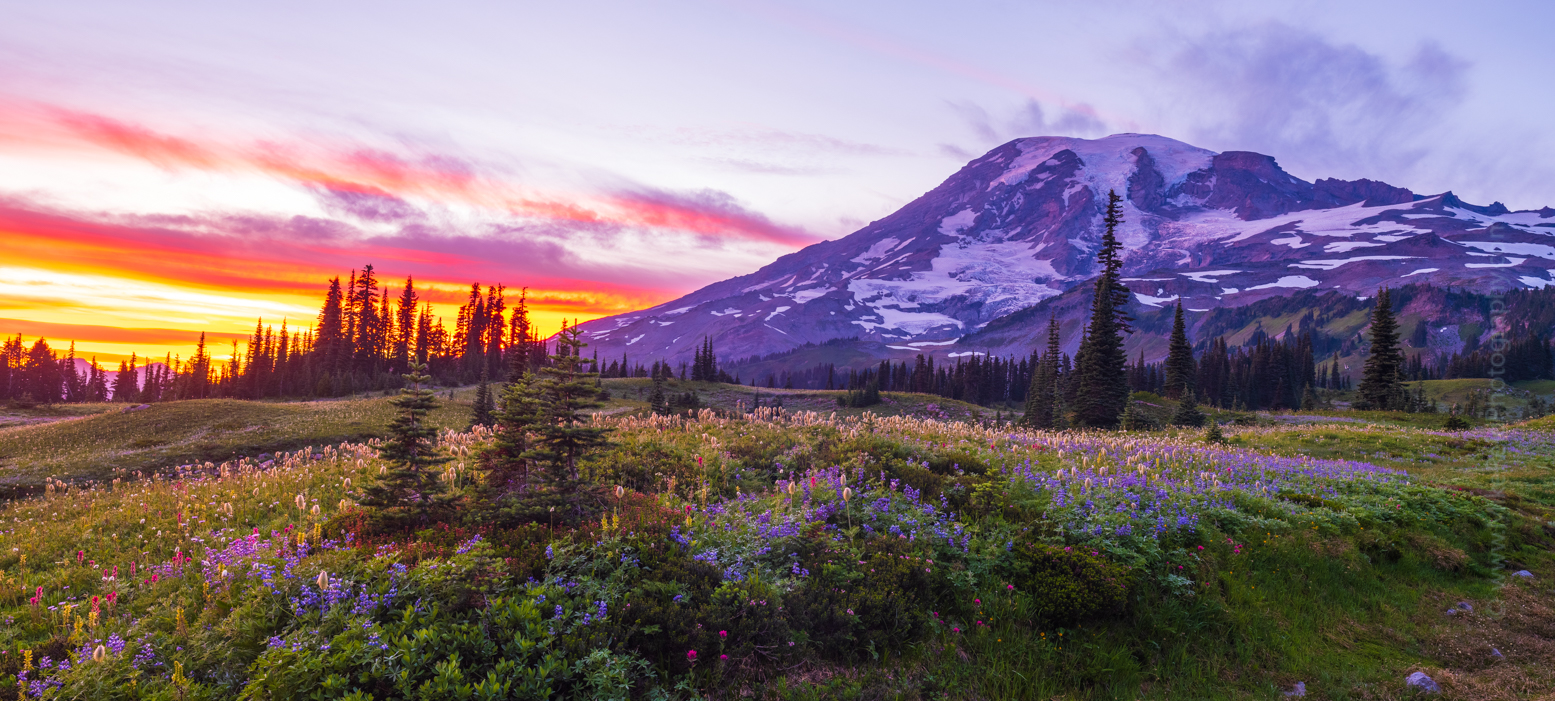 Mount Rainier Photography Fiery Sunrise Panorama.jpg
