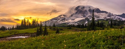 Mount Rainier Photography Sunset Meadows Panorama View.jpg