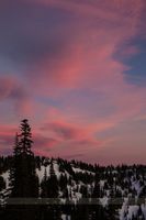 Brilliant pink and violet clouds drift above snow-covered Mazama Ridge at Mount Rainier National Park as day fades into twilight. The alpine evergreens and soft evening glow capture the peaceful beauty of the Cascades in spring. A serene and colorful Pacific Northwest mountain landscape, perfect for fine art prints and wall décor that celebrate the quiet magic of sunset in Rainier’s high country.
