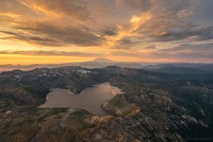 Aerial Rainier and Spirit Lake Sunset