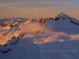 The north face of Old Guard Peak rises above the glowing glaciers of the North Cascades as the day’s last light sweeps across the alpine expanse. Layers of snow and shadow ripple through the scene while golden clouds drift through the rugged summits beyond. Captured from the air with the Fuji GFX100S, this image reveals the grandeur and serenity of Washington’s northern wilderness in the fleeting warmth of sunset.