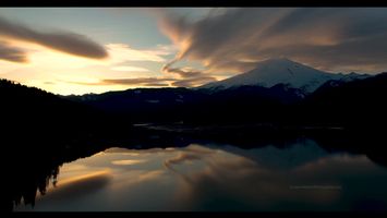 Mount Baker Sunset Cloudscape Video Stunning 4K aerial footage of Mount Baker glowing in golden light above the calm waters of Baker Lake. Clouds drift through the North Cascades as the setting sun paints the mountain and sky in fiery hues of orange, pink, and violet. A breathtaking view of Washington’s alpine wilderness, perfect for fans of drone cinematography, Pacific Northwest sunsets, and mountain landscapes.