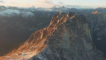 Gorgeous 4K aerial footage over the meadows of Washington Pass in the North Cascades, where golden larches glow in the warm mountain sunlight. The drone soars above alpine ridges, winding trails, and brilliant fall colors set against rugged granite peaks. This cinematic view captures the heart of Washington’s high-country wilderness at its most radiant — a perfect showcase of autumn color, alpine beauty, and Pacific Northwest drone cinematography.