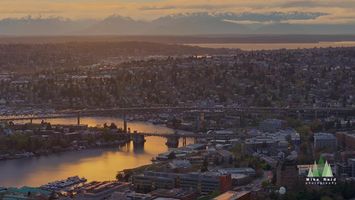 Over Seattle and Lake Union Ship Canal Sunset Reflection Video.mp4
