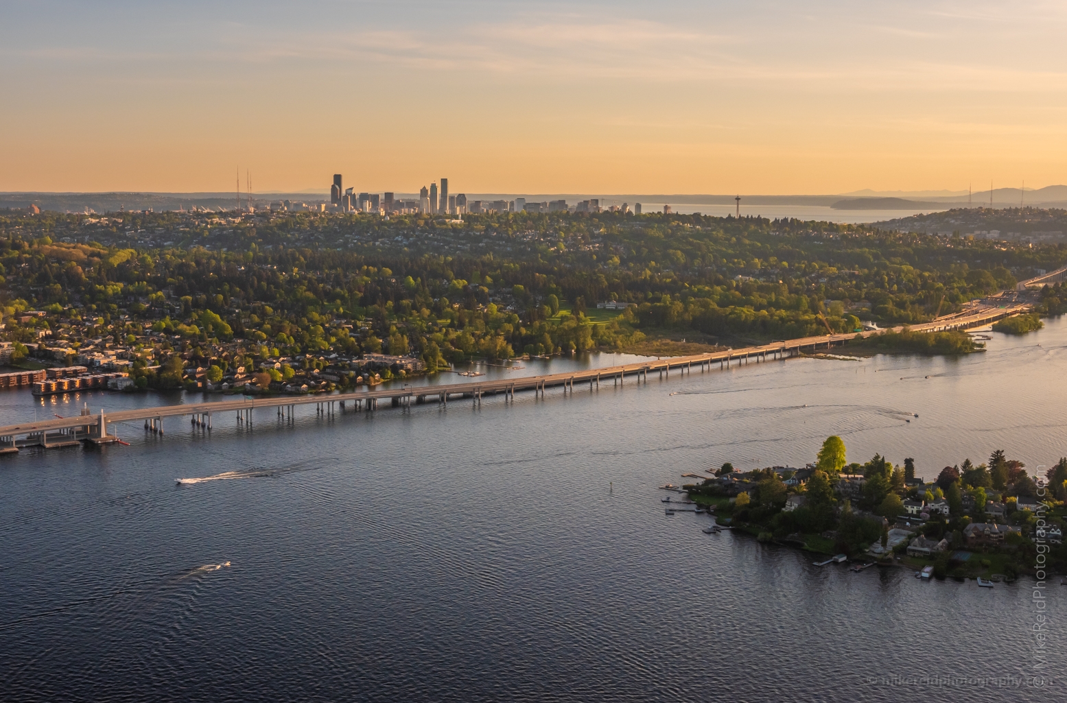 Over Lake Washington Towards Seattle Aerial Drone Evening Light #seattle #dronephotography #dronevideo #aerial #aerialphotography #aerialvideo #northwest #washingtonstate