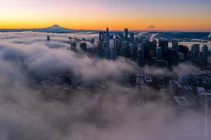 Over Seattle Downtown Sunrise Fog Motion Aerial Photography #seattle #dronephotography #dronevideo #aerial #aerialphotography #aerialvideo #northwest #washingtonstate