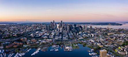 Over Seattle Downtown and Space Needle Panorama Aerial Drone Sunrise #seattle #dronephotography #dronevideo #aerial #aerialphotography #aerialvideo #northwest #washingtonstate