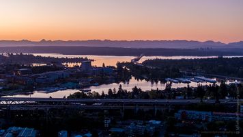 Over Seattle I5 Bridge to Lake Washington Sunrise Aerial Photography #seattle #dronephotography #dronevideo #aerial #aerialphotography #aerialvideo #northwest #washingtonstate