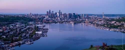 Over Seattle Lake Union and Panorama Reflection Sunrise Aerial Photography #seattle #dronephotography #dronevideo #aerial #aerialphotography #aerialvideo #northwest #washingtonstate