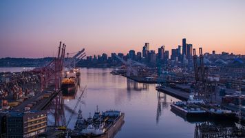 Over Seattle Port of Seattle and Downtown Sunrise Aerial Photography #seattle #dronephotography #dronevideo #aerial #aerialphotography #aerialvideo #northwest #washingtonstate