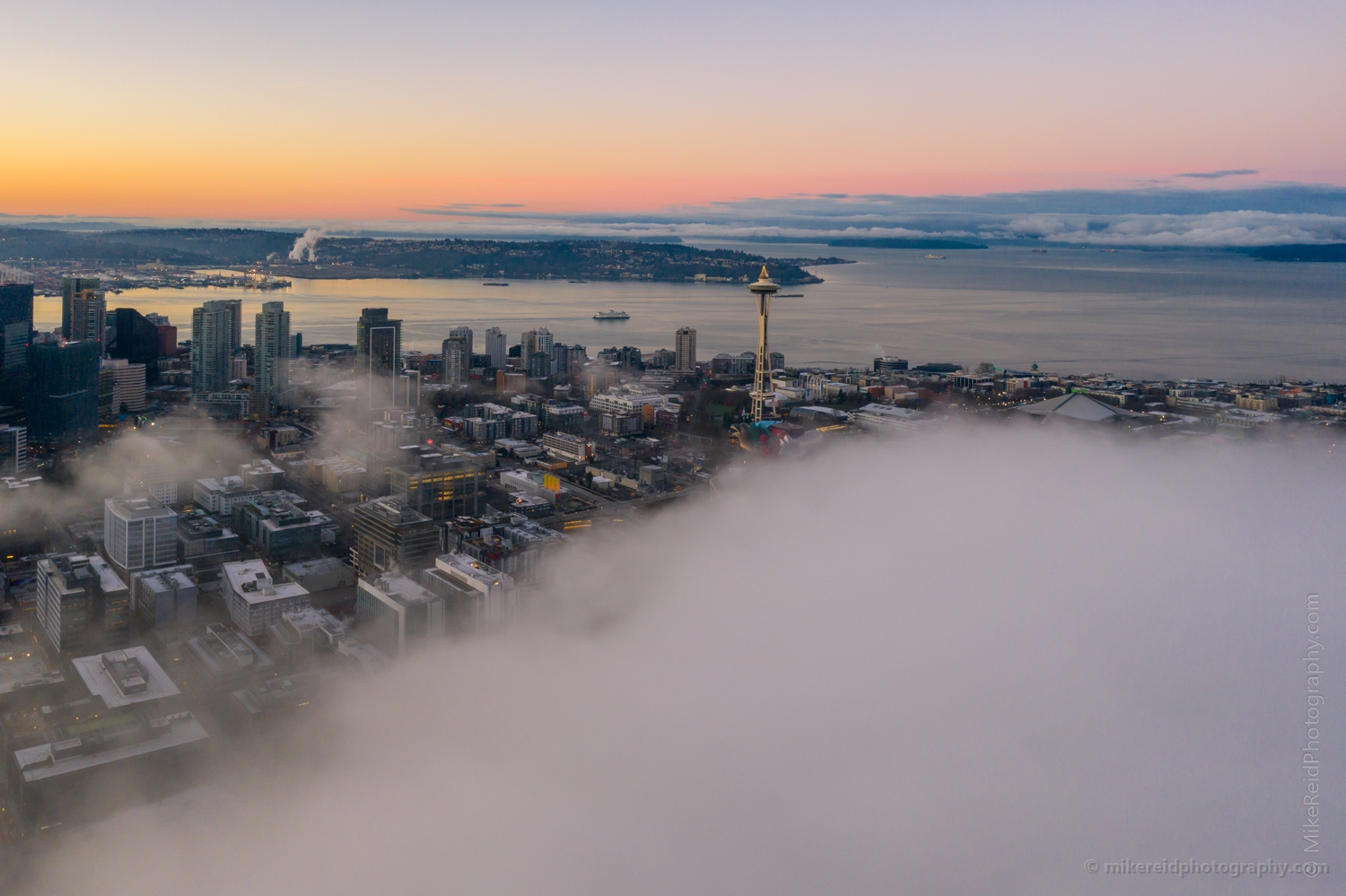 Over Seattle Space Needle Sunrise Fog Motion Aerial Photography #seattle #dronephotography #dronevideo #aerial #aerialphotography #aerialvideo #northwest #washingtonstate