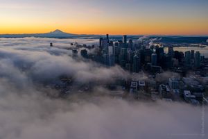 Over Seattle Sunrise Fog Motion and Mount Rainier Aerial Photography #seattle #dronephotography #dronevideo #aerial #aerialphotography #aerialvideo #northwest #washingtonstate