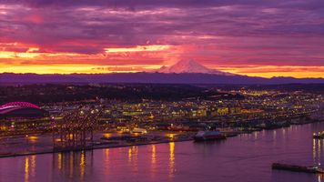 Over Seattle Sunrise Port and Mount Rainier Colors Reflections.jpg #seattle #dronephotography #dronevideo #aerial #aerialphotography #aerialvideo #northwest #washingtonstate #spaceneedle