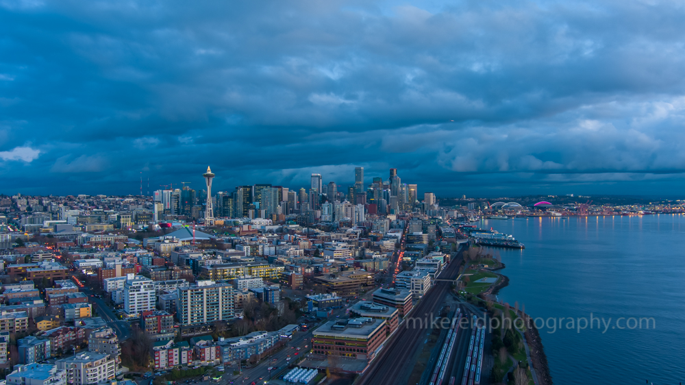 Over Seattle at Dusk Along the Waterfront.jpg #seattle #dronephotography #dronevideo #aerial #aerialphotography #aerialvideo #northwest #washingtonstate
