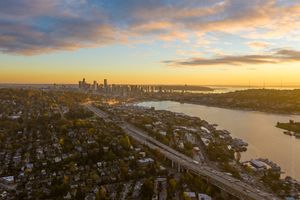 Seattle Aerial Photography City and Freeway Sunset Light #seattle #dronephotography #dronevideo #aerial #aerialphotography #aerialvideo #northwest #washingtonstate